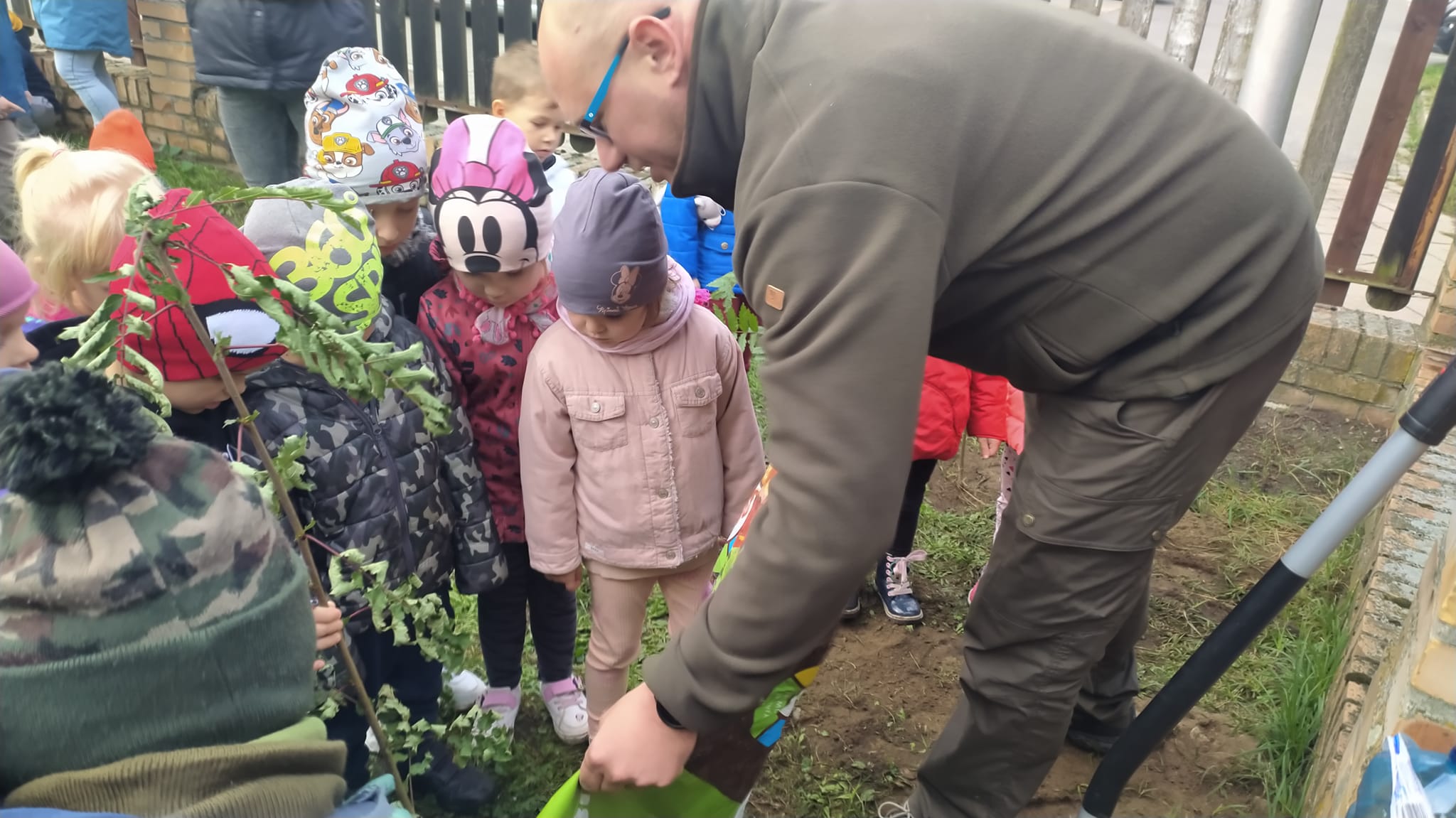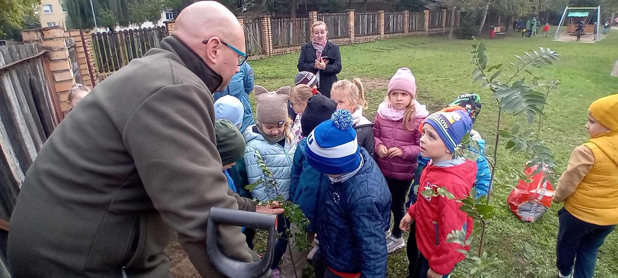 w naszym przedszkolu to okazja do sadzenia nowych drzew na placu zabaw. Tym razem sadziliśmy jarzębiny. Pracownikom Nadleśnictwa Trzcianka dziękujemy za drzewka i współpracę