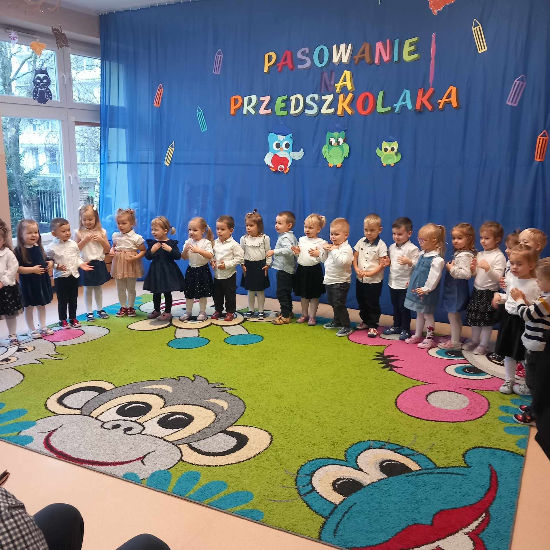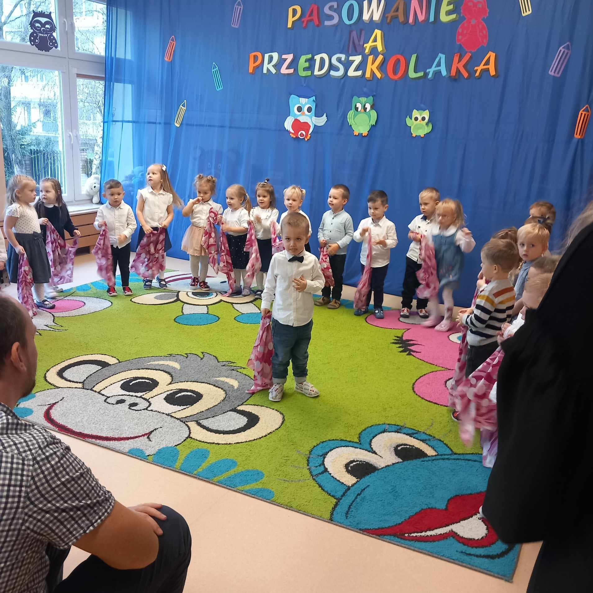 Pierwsza grupa 3 latków miała ważną uroczystość z udziałem Rodziców: Pasowanie na Przedszkolaka. Wszystkie dzieci pierwsze zadanie wykonały perfekcyjnie. Wielkie brawa.