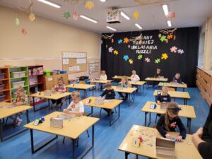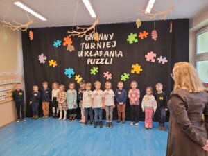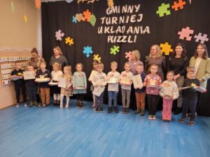 W naszym przedszkolu w środę 27.11.2024 r. odbył się Gminny Turniej Układania Puzzli. Wydarzenie o tyle wyjątkowe, że w dobie komputeryzacji i ogólnej dostępności wszelkich urządzeń elektronicznych coraz mniej dzieci z chęcią układa puzzle. Jest to bardzo ważna umiejętność wpływająca na prawidłowy rozwój dzieci. Puzzle wpływają bardzo korzystnie na pamięć wzrokową, uczą logicznego i twórczego myślenia, koncentracji uwagi, kształtują wyobraźnię przestrzenną. W konsekwencji pomagają w uczeniu się. Układając puzzle dzieci ćwiczą motorykę małą, która ma wpływ na naukę pisania. Znając pozytywny wpływ układania puzzli na rozwój dzieci jak i chcąc podkreślić znaczenie tej umiejętności zorganizowano turniej, w którym wzięło udział 14 dzieci z całej gminy. Wszyscy wykazali się szczególnymi umiejętnościami w tej dziedzinie, a wśród najszybszych znalazły się: