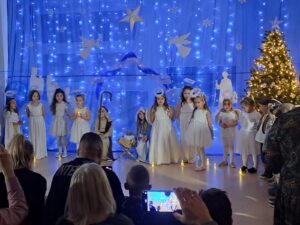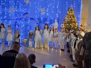 Wczoraj dla rodziców, a dziś dla społeczności przedszkolnej nasze 5 latki wystawily przedstawienie jasełkowe. Sądząc po reakcjach pań, było pięknie i bardzo wzruszająco. Gratulujemy małym aktorom i dziękujemy naszemu absolwentowi Tymonowi za uświetnienie przedstawienia grą na skrzypcach.