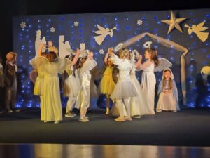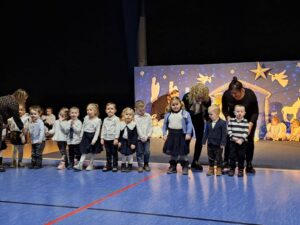 4.01.2025 w Hali Widowiskowo-Sportowej odbyły się uroczyste występy z okazji Dnia Babci i Dziadka dla dziadków dzieci z wszystkich grup przedszkolnych. Na widowni zasiadło około trzysta osób. W repertuarze były Jasełka w wykonaniu 5 latków oraz wiersze i piosenki wykonywane przez pozostałe dzieci. Występy uświetnił nasz absolwent Tymon Tomzik, ktory wykonal na skrzypcach kolędę. Było pięknie, klimatycznie i wzruszająco. Dziadkom bardzo podobało się przedstawienie, a gratulacjom nie było końca. Serdecznie dziękujemy wszystkim za tak liczne przybycie.