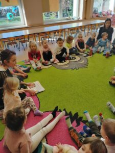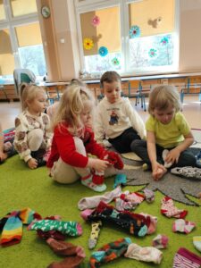 Dzisiaj w naszym przedszkolu obchodziliśmy Światowy Dzień Zespołu Downa, który przypada 21marca. Z tej okazji przedszkolaki ubrały na znak solidarności kolorowe skarpetki, wysłuchały bajkę o „Skarpetkowej Przyjaźni”. Celem zajęć było Kształtowanie postawy akceptacji i szacunku wobec osób z zespołem Downa i innych osób z niepełnosprawnościami. Uświadomienie dzieciom, że różnorodność czyni świat piękniejszym i każdy człowiek jest wyjątkowy. Rozwijanie wrażliwości społecznej oraz umiejętności wyrażania emocji i empatii oraz rozwijanie sprawności manualnej poprzez tworzenie swojej skarpetki. Wspólna, radosna zabawa integrująca grupę.