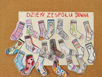 Dzisiaj w naszym przedszkolu obchodziliśmy Światowy Dzień Zespołu Downa, który przypada 21marca. Z tej okazji przedszkolaki ubrały na znak solidarności kolorowe skarpetki, wysłuchały bajkę o „Skarpetkowej Przyjaźni”. Celem zajęć było Kształtowanie postawy akceptacji i szacunku wobec osób z zespołem Downa i innych osób z niepełnosprawnościami. Uświadomienie dzieciom, że różnorodność czyni świat piękniejszym i każdy człowiek jest wyjątkowy. Rozwijanie wrażliwości społecznej oraz umiejętności wyrażania emocji i empatii oraz rozwijanie sprawności manualnej poprzez tworzenie swojej skarpetki. Wspólna, radosna zabawa integrująca grupę.
